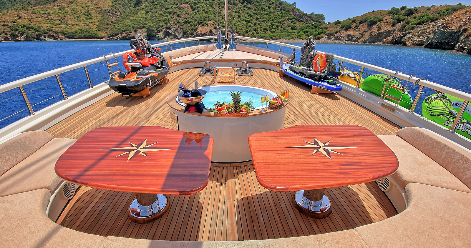 Other: Snorkeling Equipment, Fishing tackle, Sun tents, Sun Beds, Deck Shower, Sea ladder
